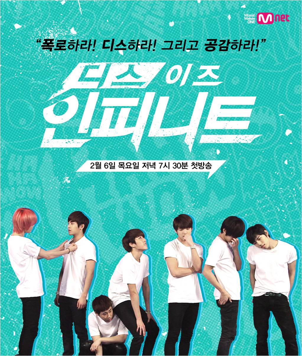 偶像真人秀≪This Is Infinite≫以聚焦这个出道5年男子团体Infinite的日常生活为主,从2月起在Mnet频道开播,更在韩国荣登当月“社交媒体上最热烈讨论的话题”第2名,而5月还会透过Channel M在东南亚地区播映,届时大马的HyppTV也收看得到。