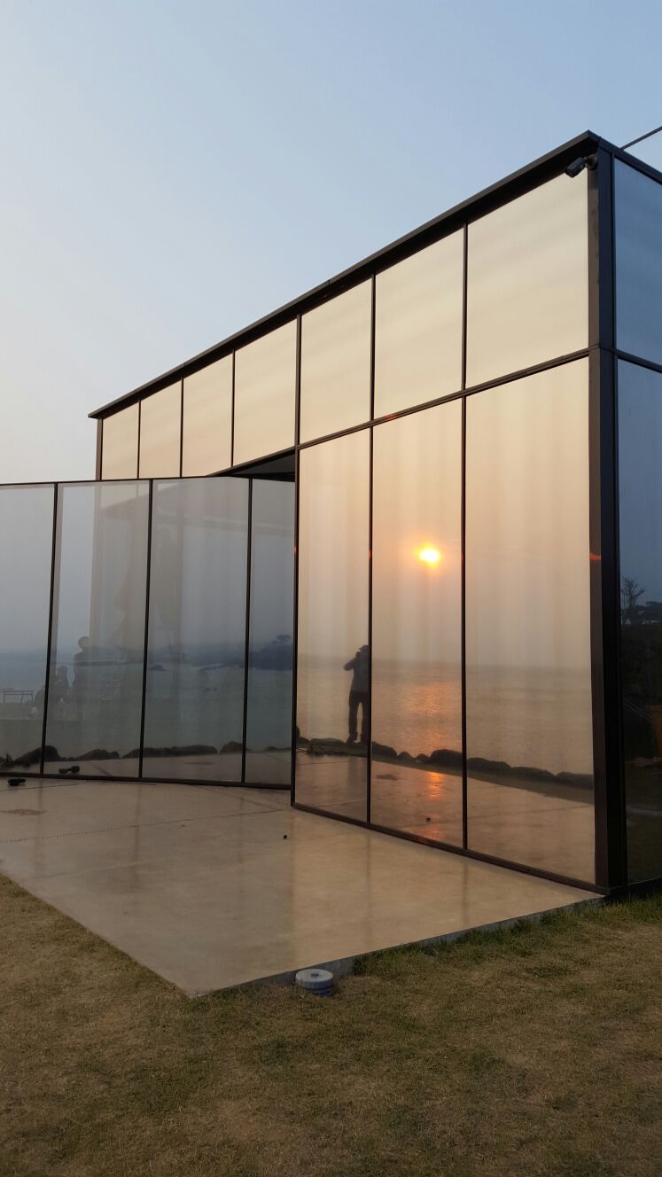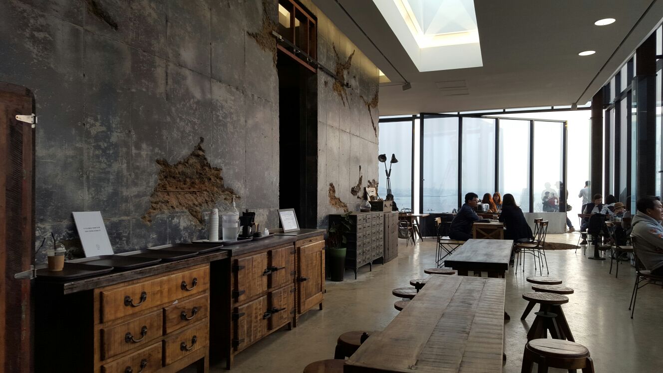 长方形的建筑物 , 造型简洁利落 , 内外皆露出原石的粗砺感 , 可谓别具个性。里面的混凝土墙壁 , 处处遍布着斑驳的凹痕 , 带来不假修饰的原始气息。整体的室内装潢 , 偏向十分粗犷的工业味。至于还没开放的二楼 , 想必一定诱发VIP们的好奇心。