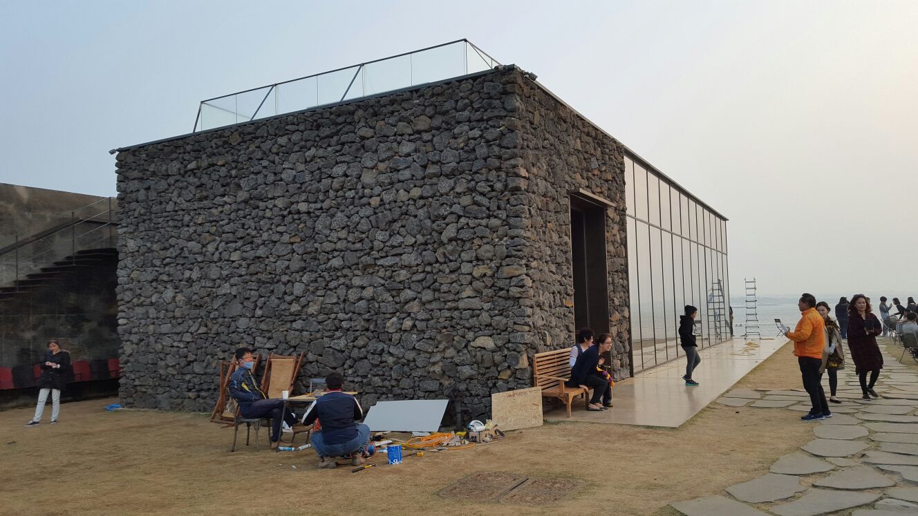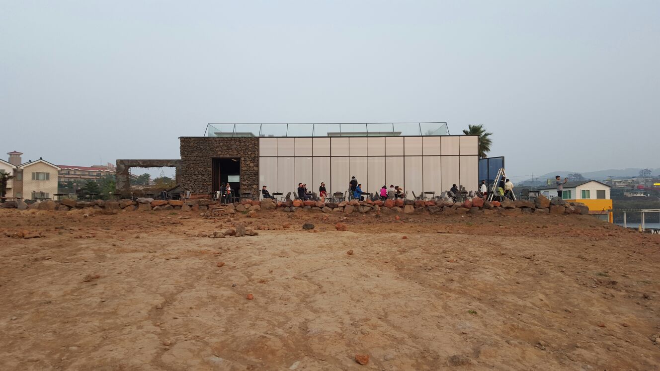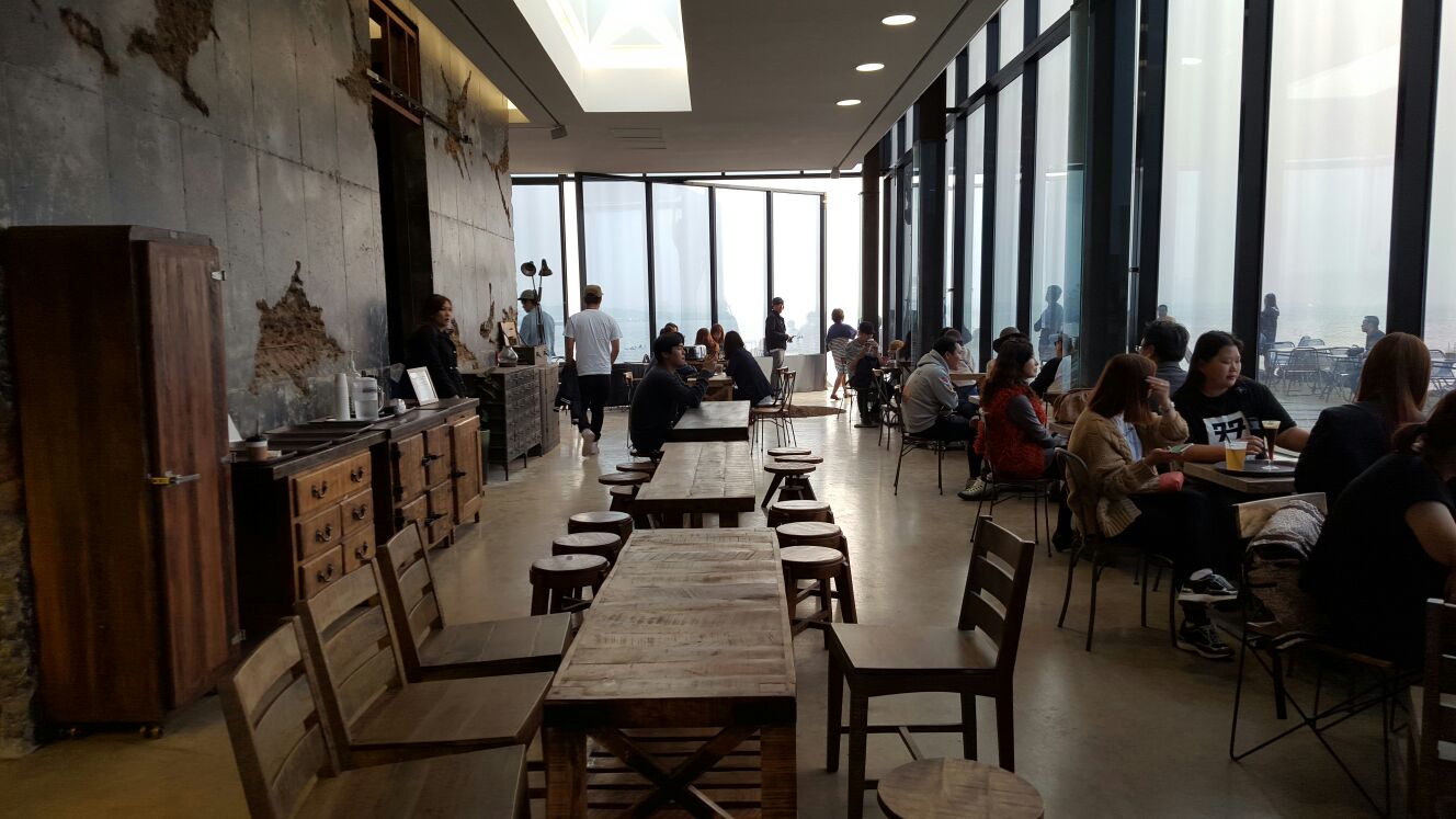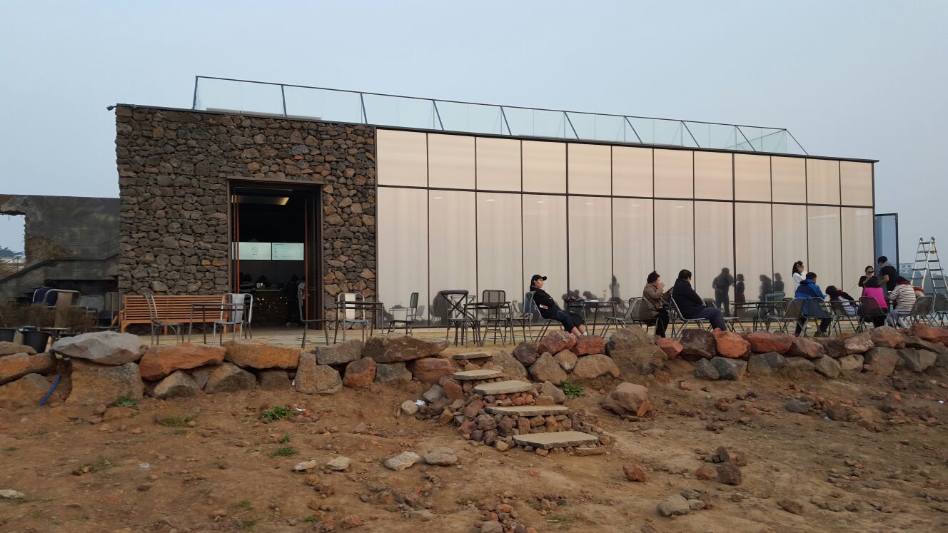 GD在济州岛开设的Monsant咖啡馆 , 立于面向大海的悬崖峭壁。停车场在山脚下 , 必须沿着一段陡坡步行 , 方能登顶 , 相当考验脚力。